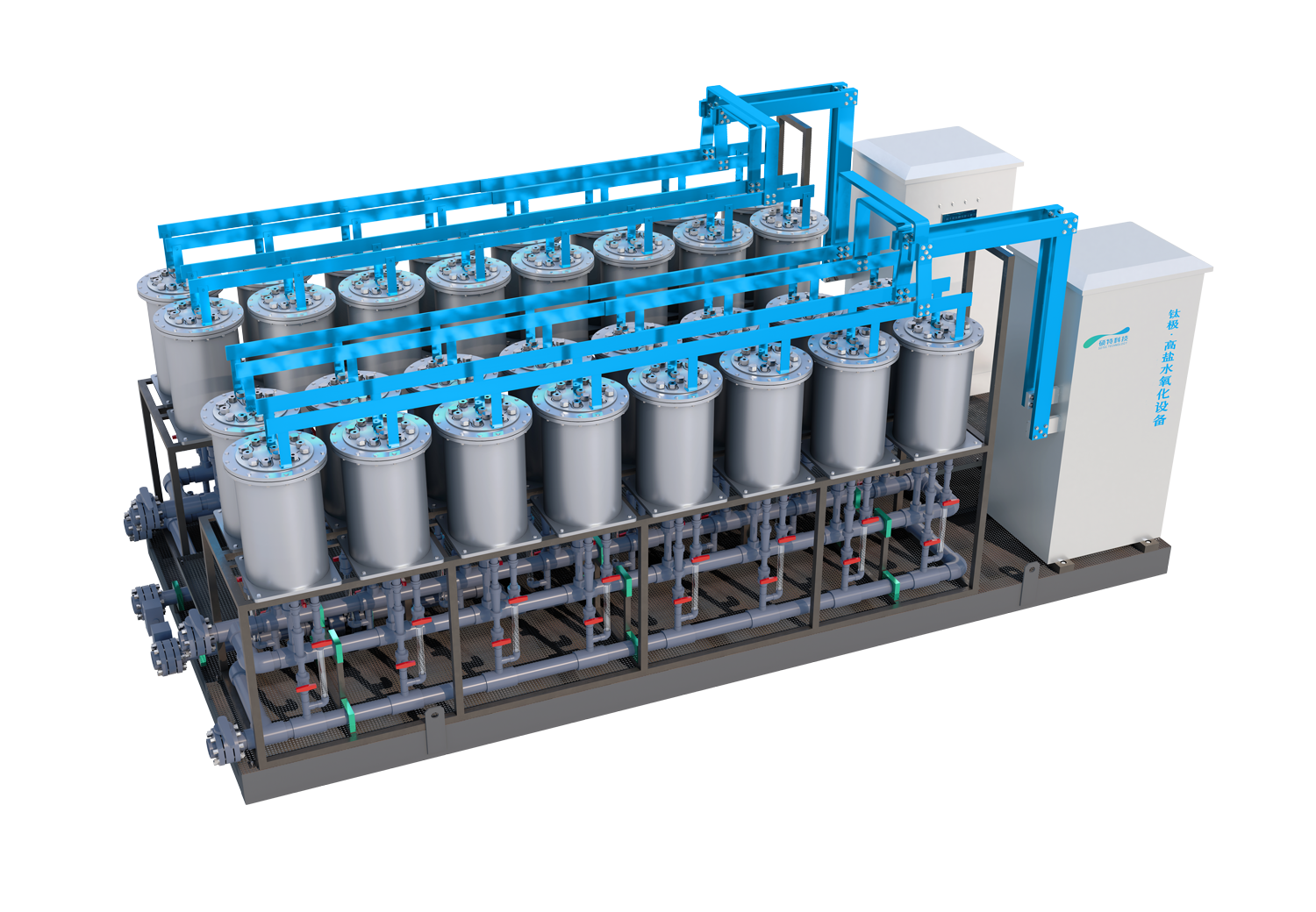 鈦極高鹽水氧化設(shè)備是一種可同時(shí)除有機(jī)物和氮的電化學(xué)氧化設(shè)備。本設(shè)備采用了含鈦復(fù)合陽極材料和特殊反應(yīng)器結(jié)構(gòu)設(shè)計(jì),耐酸堿到高電位腐蝕的能力強(qiáng),設(shè)備使用壽命長,適用于各類高鹽高COD有機(jī)水的脫酸,高鹽含氨氮廢水的脫氫及色度處理。